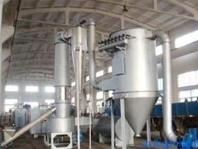 流化床干燥機是由物料自進料進口進入機內(nèi),在振動力作用下,物料沿水平面流化床拋擲,向前連續(xù)運動,熱風向上穿過流化床同濕物料換熱后,濕空氣經(jīng)旋風